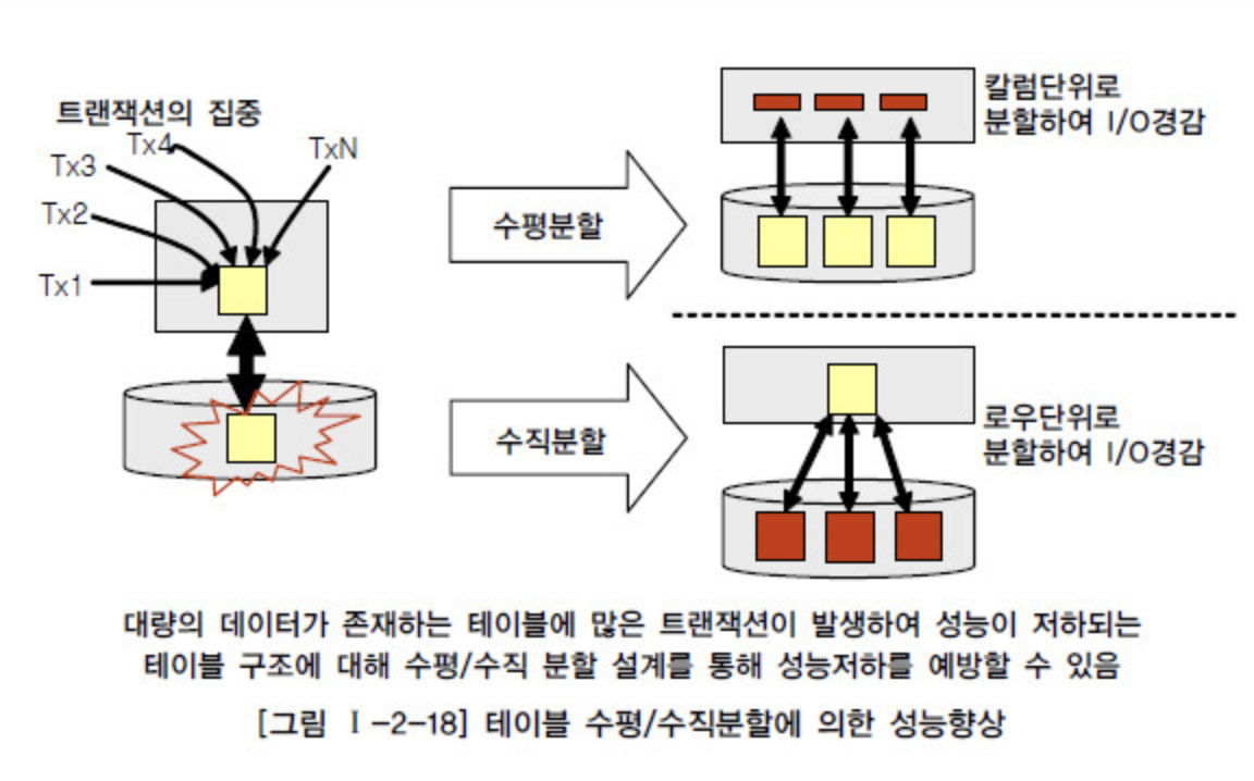 → 이러한 경우, 트랜잭션이 분산 처리될 수 있도록 테이블단위에서 분할의 방법을 적용할 필요!