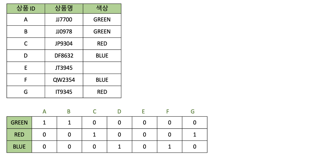 - 인덱스 컬럼의 데이터를 Bit 값인 0 또는 1로 변환하여 인덱스 키로 사용하는 방법